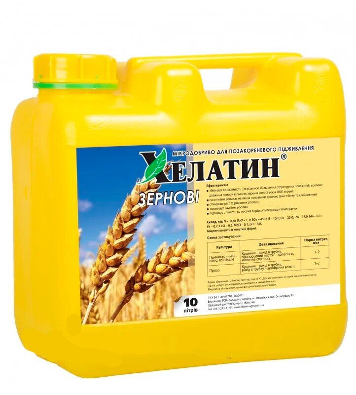 Удобрение Хелатин Зерновые ― высокоэффективное экологически чистое микроудобрение в биологически активной форме на основе хелатов микроэлементов для обработки семян, листовой и корневой обработки растений.