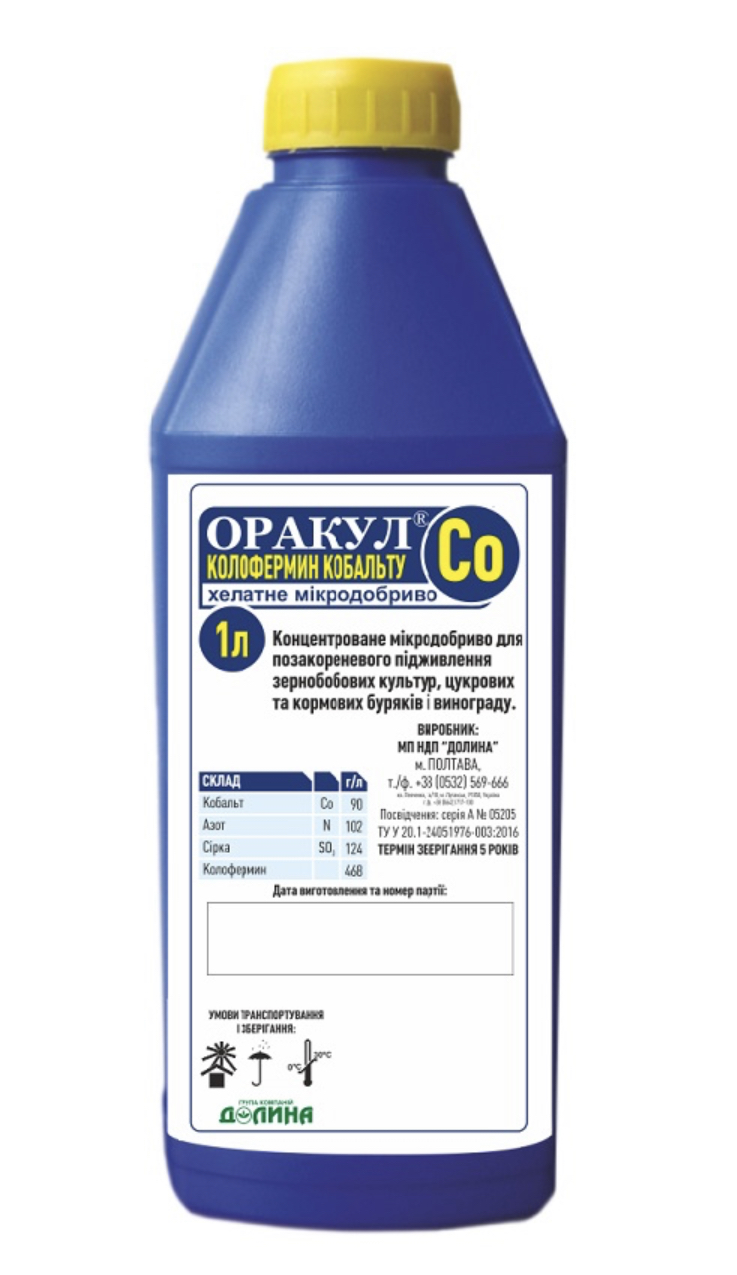 ОРАКУЛ® колофермин кобальта – концентрированное микроудобрение для для обработки семян зерновых и внекорневой подкормки зернобобовых, полевых культур, винограда, сахарной и кормовой свеклы.