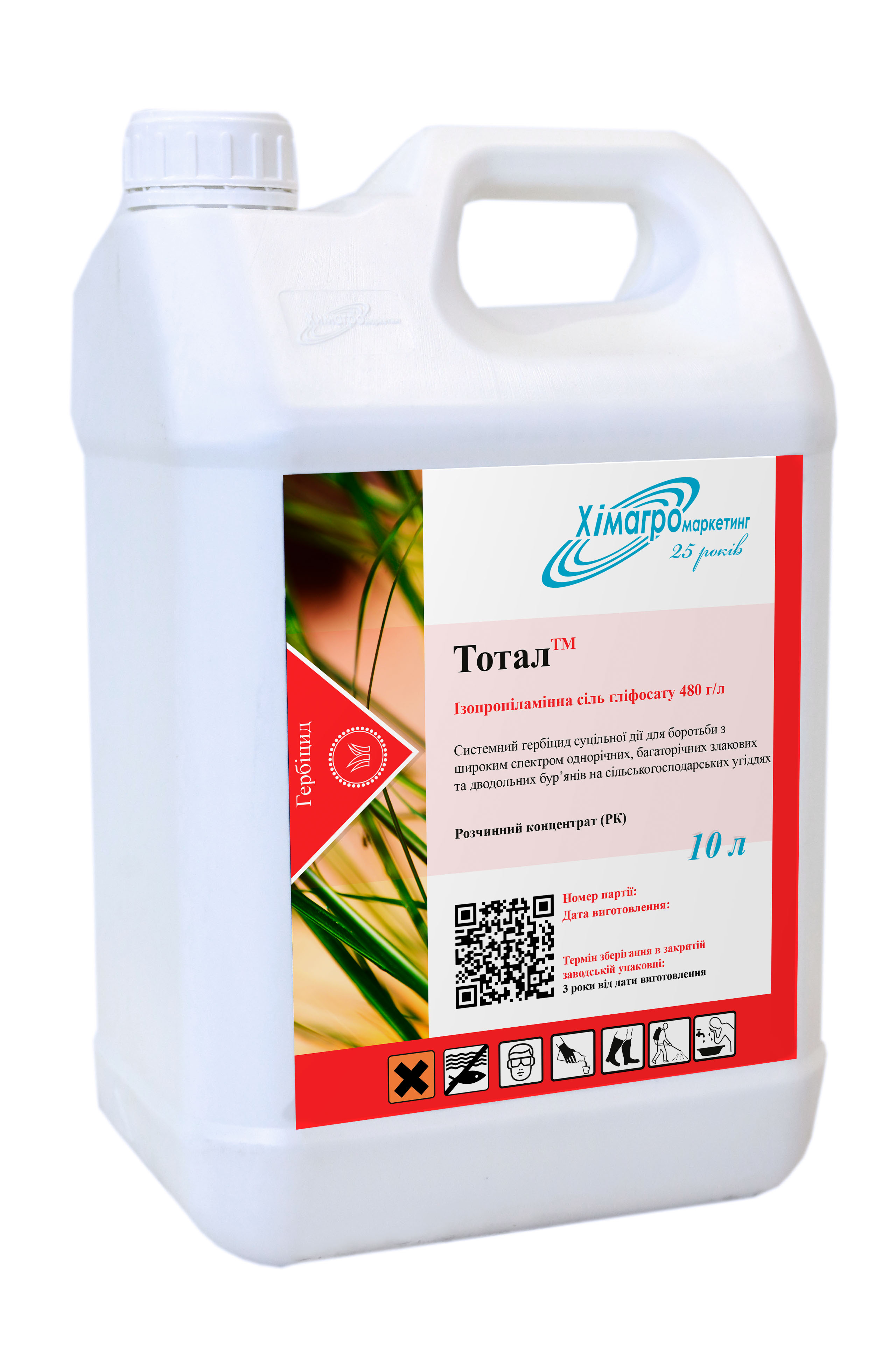 Системный гербицид сплошного действия для борьбы с широким спектром однолетних и многолетних сорняков на сельскохозяйственных угодьях и землях несельскохозяйственного назначения. Десикант зернобобовых и подсолнечника.